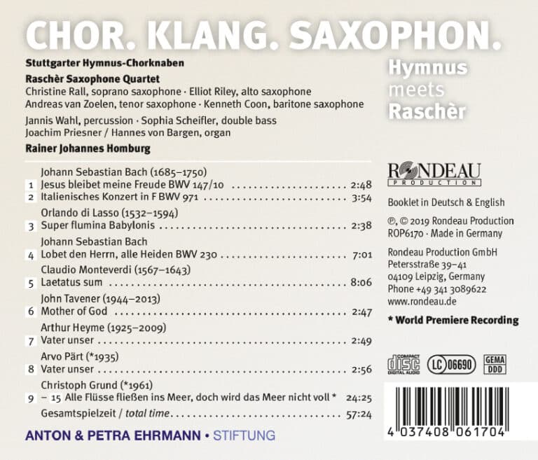 Künstler: Stuttgarter Hymnus-Chorknaben, Raschèr Saxophone Quartet, Rainer Johannes Homburg