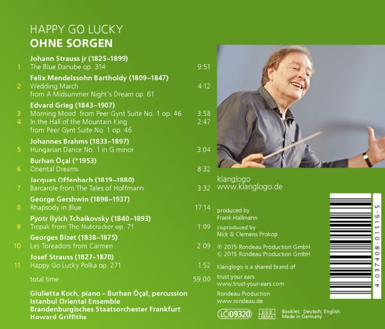Die Morgenstimmung aus Griegs Peer Gynt-Suite gehört dazu, ebenso wieJohannes Brahms Ungarische Tänze: Es ist Musik für die Ewigkeit. Auch für die handverlesenen Stücke, die unter dem Motto der Polka Ohne Sorgen von Josef Strauss auf dieser CD versammelt sind, trifft das zu: beliebt und gern gehört – vor allem in der jugendlich-frischen Interpretation des Brandenburgischen Staatsorchesters Frankfurt unter der inspirierten Leitung von Howard Griffiths. Hörgenuss gibt es sowohl für den Freund symphonischer Unterhaltungsmusik mit dem Walzer An der schönen blauen Donau von Johann Strauss jr., als auch für den Liebhaber klassischer Werke: Neben Passagen aus Georges Bizets Carmen erklingen der Hochzeitsmarsch aus Felix Mendelssohn Bartholdys Sommernachtstraum ebenso wie Werke von Jacques Offenbach und Peter Tschaikowsky. Swingende Rhythmik bieten die Rhapsody in Blue von George Gershwin und Weltmusik von Burhan öcal.