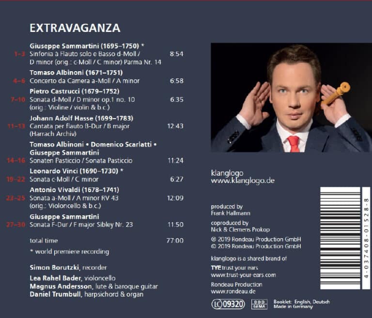 Was wäre, wenn in einer Barockoper eine Blockflöte anstelle der Primadonna auftreten würde? Und was, wenn der Basso Continuo in die Rolle von Orchester, Bühnenarbeiter, Beleuchter, Maskenbildner und Kostümschneider schlüpfte? Simon Borutzki und seine Confidenti, wie man in der Barockoper die Vertrauten der Protagonisten nannte, tun genau dies. Vivaldi, Sammartini, Castrucci, Albinoni, Hasse, Vinci und Scarlatti sind auf dieser CD zu hören, teils in Originalkompositionen teils in eigenen Arrangements von Simon Borutzki und seinem Ensemble. Exquisite Blockflöten aus der Werkstatt von Sebastian & Ernst Meyer erklingen neben historischem Instrumentarium, gespielt von international herausragenden Barockspezialisten.