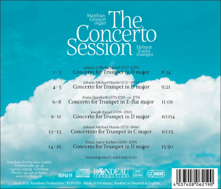 Trompetenkonzerte begleitet von einer Orgel statt von einem Orchester – diese Idee kam Helmut Fuchs, dem Solotrompeter der Sächsischen Staatskapelle Dresden, und dem Dresdner Frauenkirchenkantor Matthias Grünert bereits vor einiger Zeit. Für ihr Vorhaben wählten die beiden Künstler Werke aus dem 18. Jahrhundert, geschrieben von Komponisten, die heute eher unbekannt sind – zu Unrecht, möchte man meinen, wenn man dieser Einspielung lauscht. Diese zeichnet sich durch große Virtuosität sowie eine erfrischende Lebendigkeit und Spielfreude aus, die an den Charakter einer Jam-Session erinnern. Eine gelungene Neuinszenierung selten zu hörender Werke.